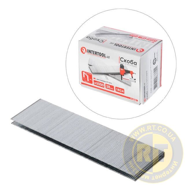 Скоба для степлера PT-1612 38×5,7(5,8) мм, 18GA, 1,25×1,0 мм, 5000 од/упак INTERTOOL PT-8338