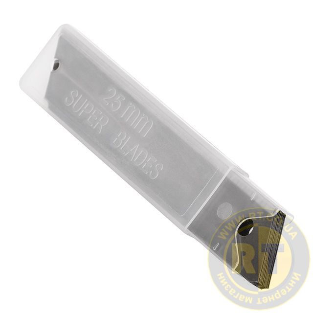 Великий запас лез: в одній упаковці 10 лез по 7 сегментів, шириною 25 мм. Використовуються як витратний матеріал для будівельних, канцелярських та малярних ножів. Виготовлені з інструментальної сталі, мають високу міцність навіть на тонкому вістрі.