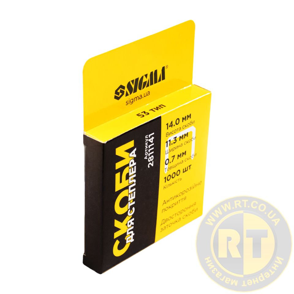 Скоби 14×11.3мм 1000шт SIGMA (2811141) призначені для м'яких порід дерева, ДСП, фанери.