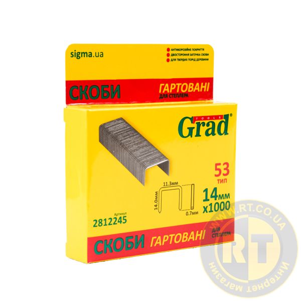 Скоби 14×11.3мм гартовані 1000шт GRAD 2812245
