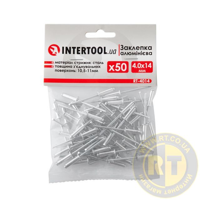 Заклепка алюмінієва, 4,0×14,0 мм, 50 шт. INTERTOOL RT-4014