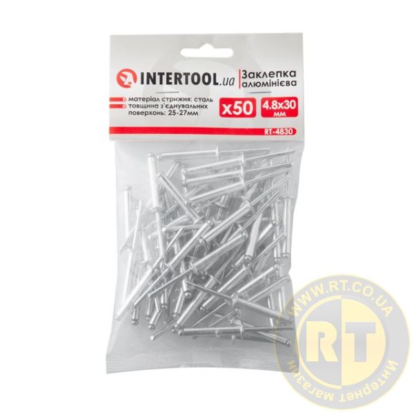 Заклепка алюмінієва, 4,8×30,0 мм, 50 шт. INTERTOOL RT-4830