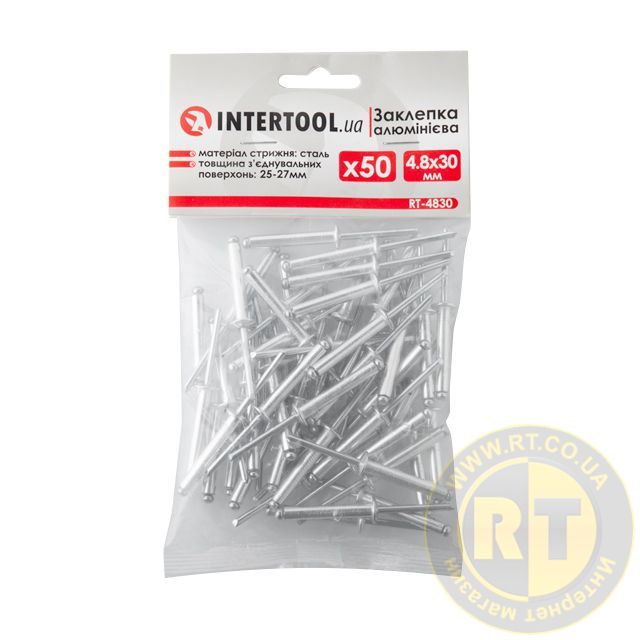 Заклепка алюмінієва, 4,8×30,0 мм, 50 шт. INTERTOOL RT-4830