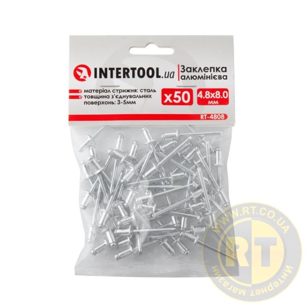 Заклепка алюмінієва, 4,8×8,0 мм, 50 шт. INTERTOOL RT-4808