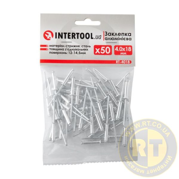 Заклепка алюмінієва, 4,0×18,0 мм, 50 шт. INTERTOOL RT-4018