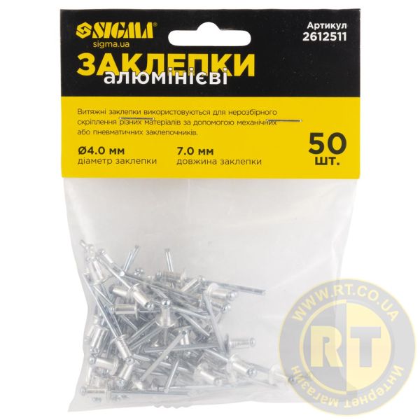 Заклепки алюмінієві 4.0×7.0мм 50шт Standard SIGMA (2612511)
