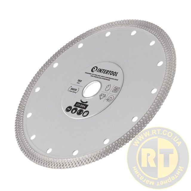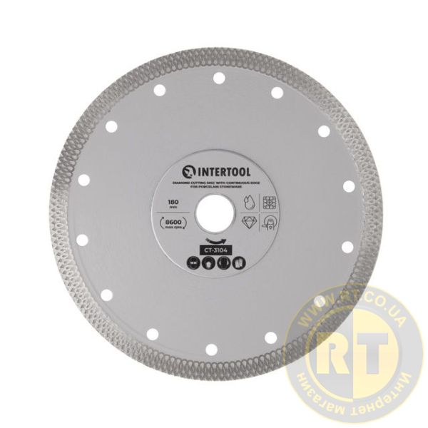 Диск відрізний алмазний, з суцільною кромкою, по керамограніту, 180 мм, 36%, 8600 об/хв INTERTOOL CT-3104
