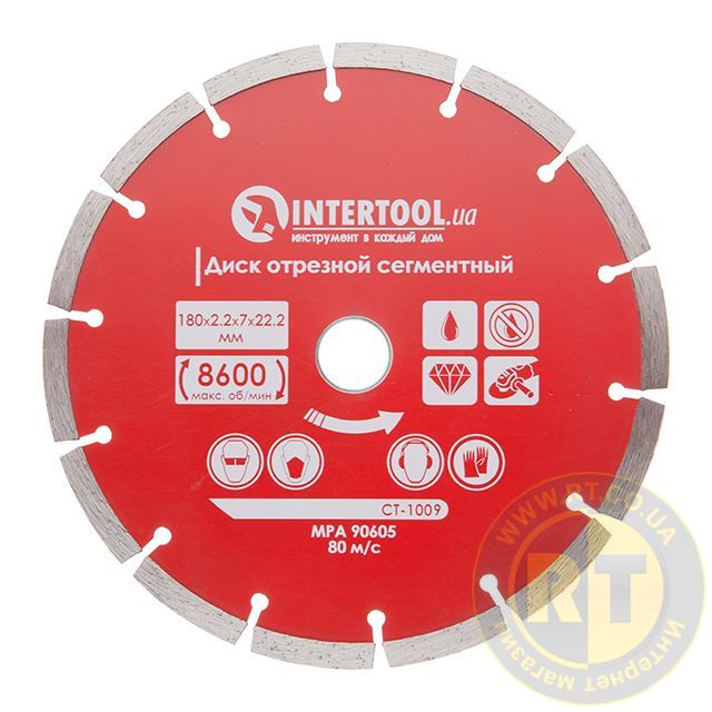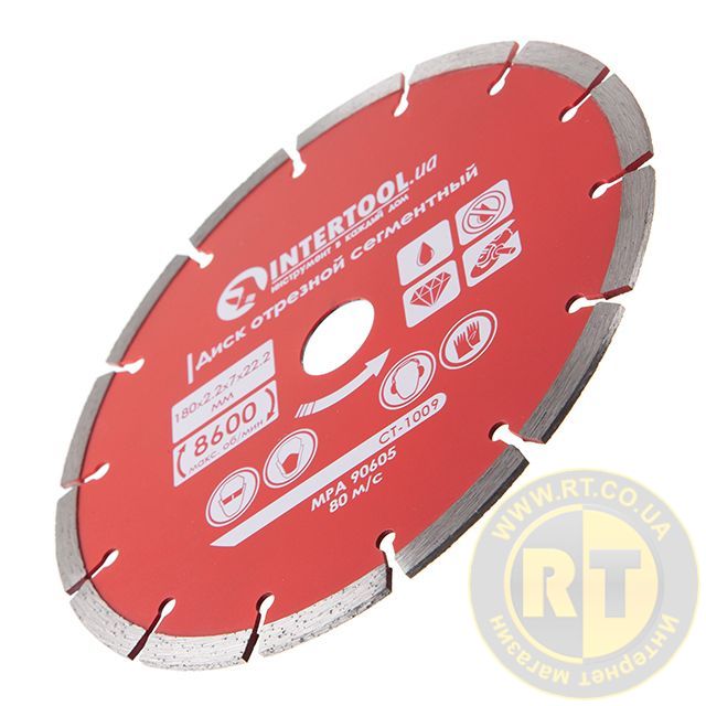 Диск відрізний сегментний алмазний, 180 мм, 22-24%, 8600 об/хв INTERTOOL CT-1009
