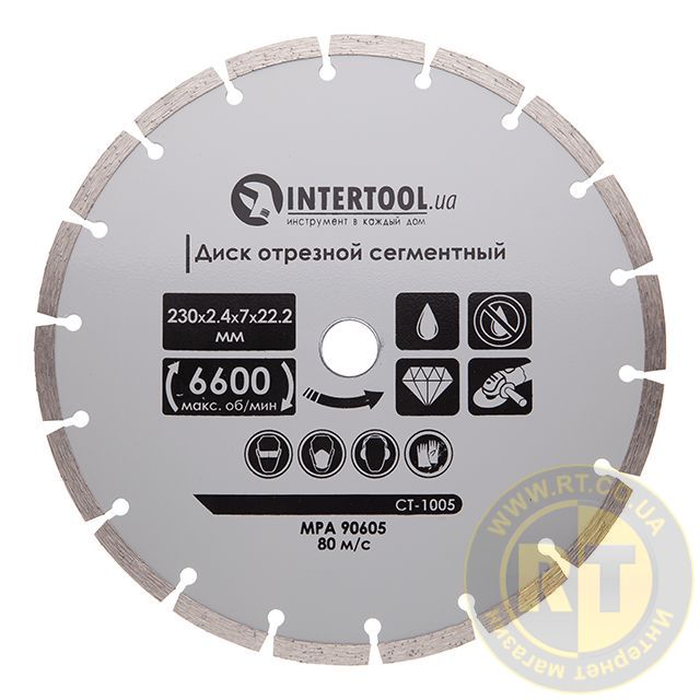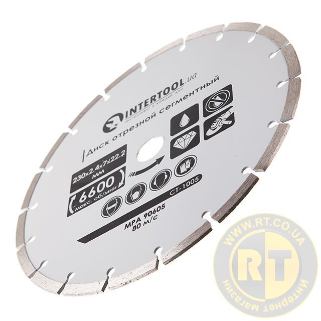 Диск відрізний сегментний алмазний, 230 мм, 16-18%, 6600 об/хв INTERTOOL CT-1005