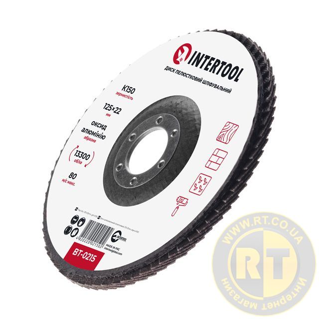 Диск шліфувальний пелюстковий, 125×22 мм, зерно K150, 13300 об/хв INTERTOOL BT-0215