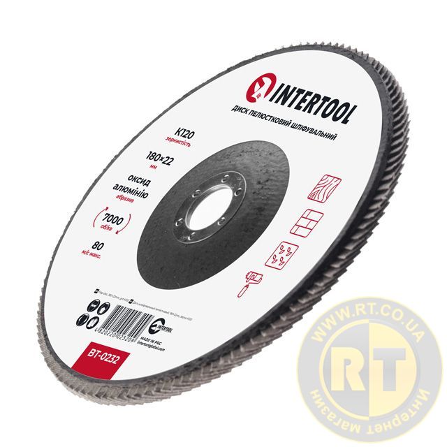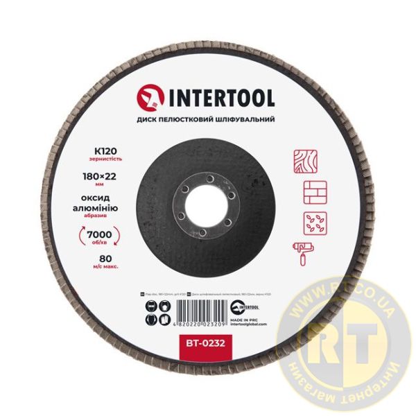Диск шліфувальний пелюстковий, 180×22 мм, зерно K120, 7000 об/хв INTERTOOL BT-0232