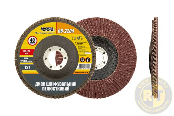Диск шліфувальний пелюстковий Т27 зерно 40 125х22 мм MASTERTOOL 08-2204