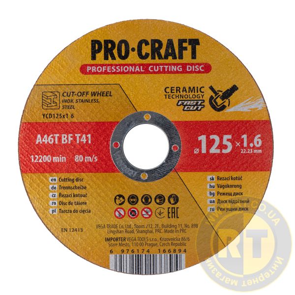 Диск відрізний керамічний Procraft YCD125x1.6 125 мм 1,6 мм 22,2 мм YCD2516