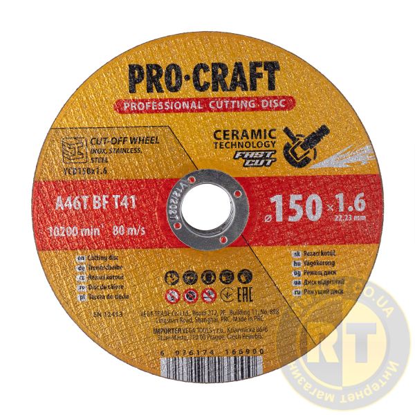 Диск відрізний керамічний Procraft YCD150x1.6 150 мм 1,6 мм 22,2 мм YCD5016