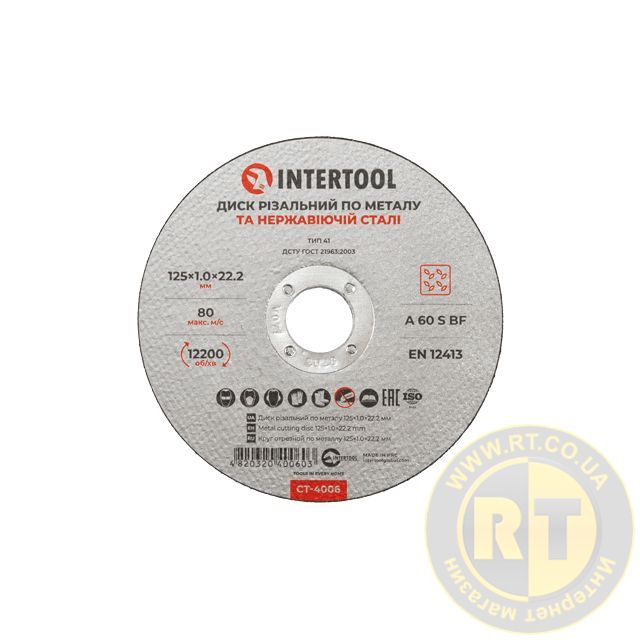 Диск відрізний по металу, 125×1,0×22,2 мм, 12200 об/хв INTERTOOL CT-4006