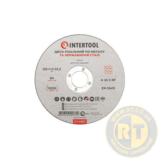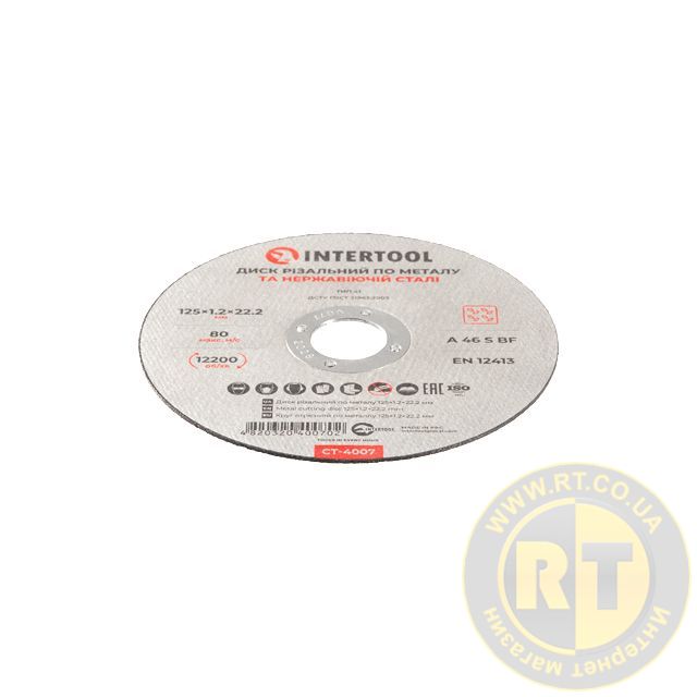 Диск відрізний по металу, 125×1,2×22,2 мм, 12200 об/хв INTERTOOL CT-4007