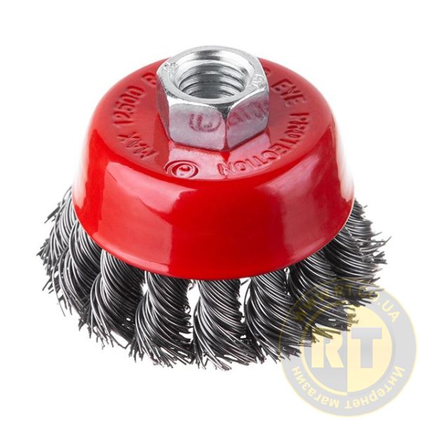 Щітка чашкова, 65 мм, M14, пучки крученого дроту, для КШМ, 12500 об/хв INTERTOOL BT-2065