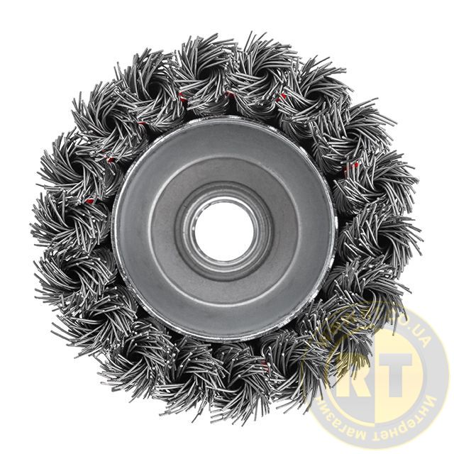 Щітка з витим дротом спеціально розроблена для швидкого очищення і шліфування різноманітних поверхонь: металу, цегли, каменю, дерева тощо. Пучки витого дроту забезпечують відмінну якість зачищання навіть у важкодоступних місцях.