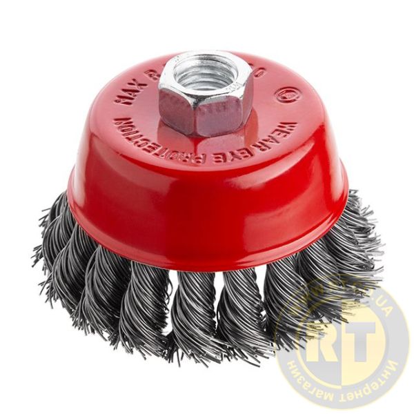 Щітка чашкова, 75 мм, M14, пучки крученого дроту, для КШМ, 12500 об/хв INTERTOOL BT-2075