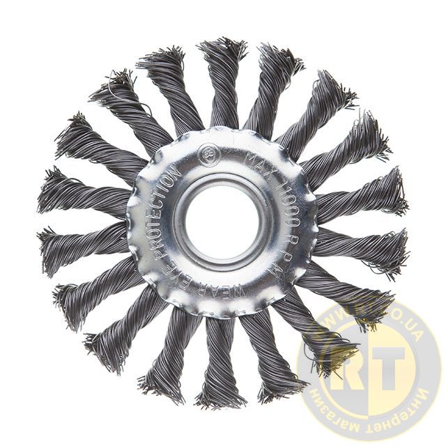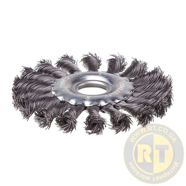 Щітка з витого дроту спеціально розроблена для швидкого очищення і шліфування різноманітних поверхонь: металу, цегли, каменю, дерева тощо. Пучки витого дроту забезпечують відмінну якість зачищання навіть у важкодоступних місцях.