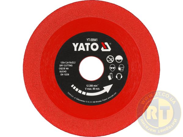 Диск вирізаний діамантом від греся, скла, кераміки Ø = 125/22,2x1,2x15 мм, в режимі SUMO [25/200] Yato YT-59941