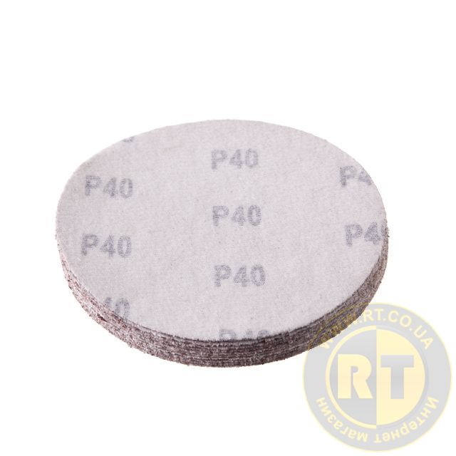 Круг наждаковий на липучці 125 мм, папір клас E, щільність 220 г/м², К40, 10 од. INTERTOOL BT-0554