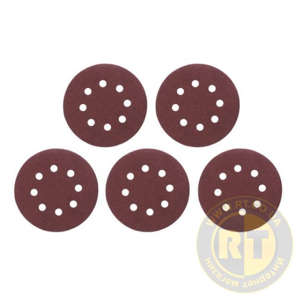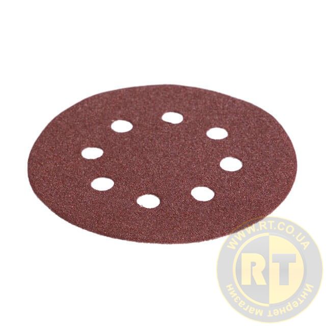 Круг наждаковий на липучці з отворами 125 мм, папір клас С, щільність 140 г/м², К100, 5 од. INTERTOOL BT-0586