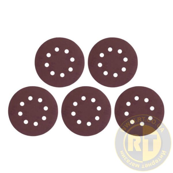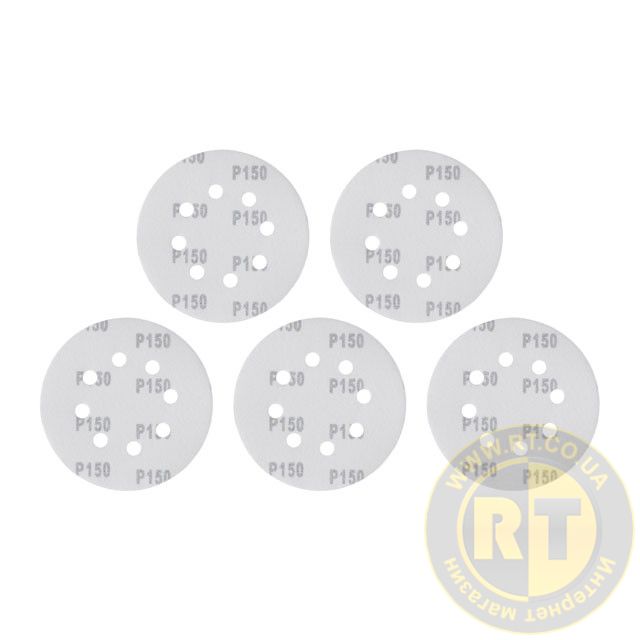Круг наждаковий на липучці з отворами 125 мм, папір клас С, щільність 140 г/м², К150, 5 од. INTERTOOL BT-0588
