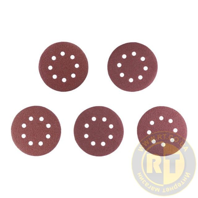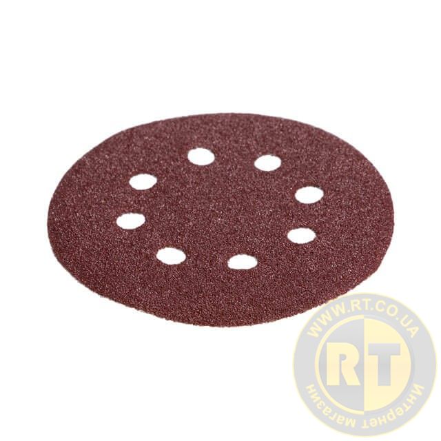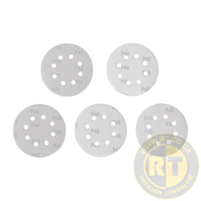 Круг наждаковий на липучці з отворами 125 мм, папір клас С, щільність 140 г/м², К40, 5 од. INTERTOOL BT-0583