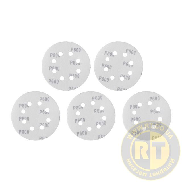 Круг наждаковий на липучці з отворами 125 мм, папір клас С, щільність 140 г/м², К600, 5 од. INTERTOOL BT-0594