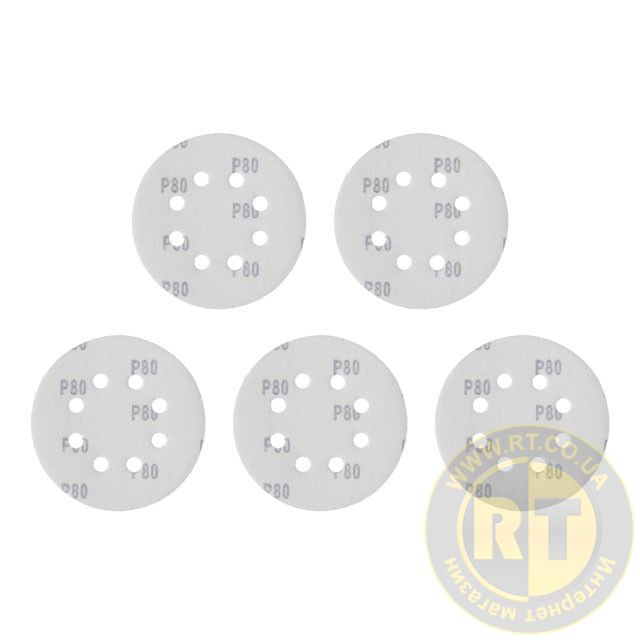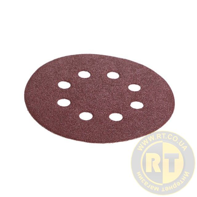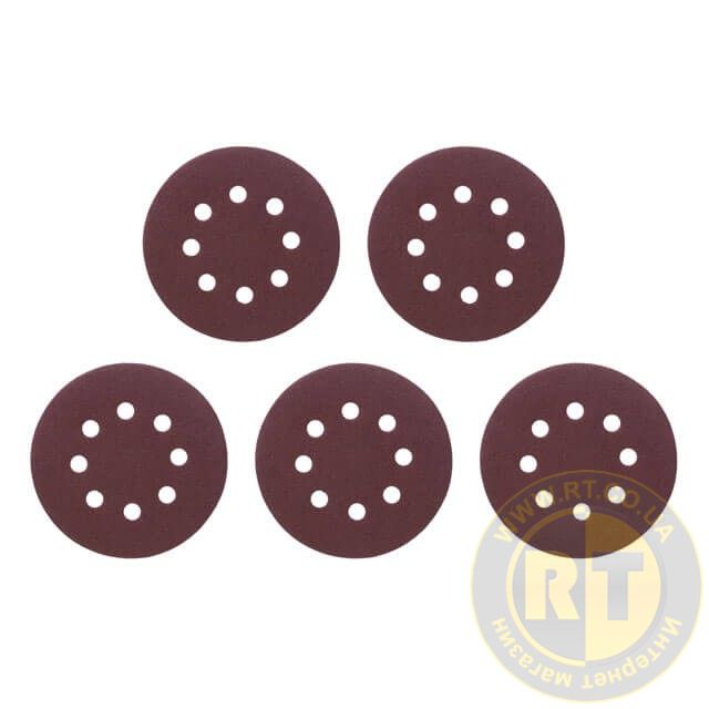 Круг наждаковий на липучці з отворами 125 мм, папір клас С, щільність 140 г/м², К80, 5 од. INTERTOOL BT-0585