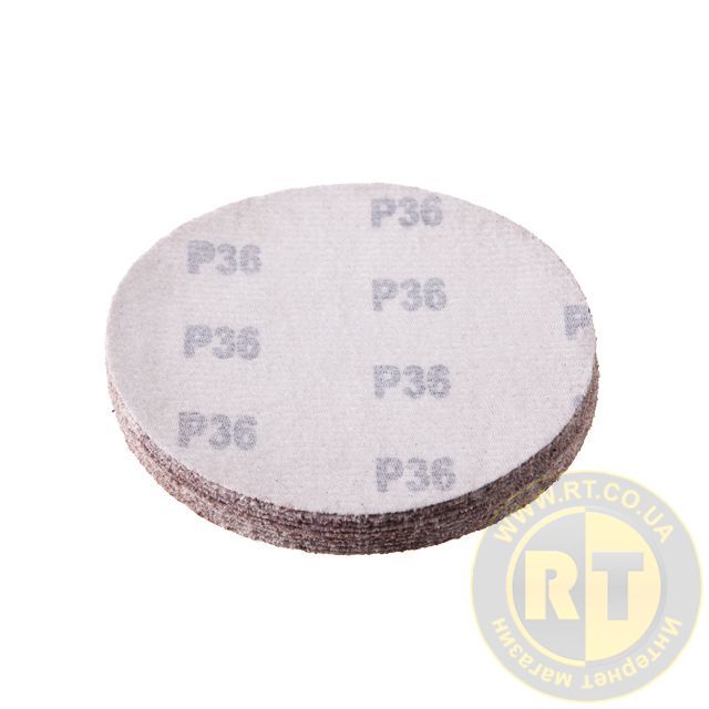 Круг наждаковий на липучці 125 мм, папір клас E, щільність 220 г/м², К36, 10 од. INTERTOOL BT-0552
