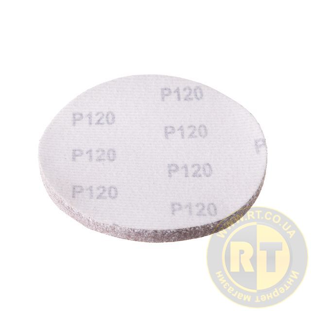 Круг наждаковий на липучці 125 мм, папір клас С, щільність 120 г/м², К120, 10 од. INTERTOOL BT-0512