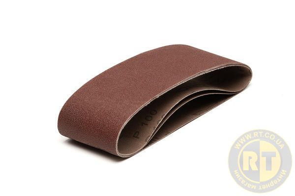 Стрічка шліфувальна збіжжя 100, 76×457 мм, набір 3 шт - для чистового шліфування та підготовки під фарбу або лак. Для стрічкових шліфувальних машин. Електрокорунд, подвійне смоляне покриття, тканина X. В упаковці 3 шт.