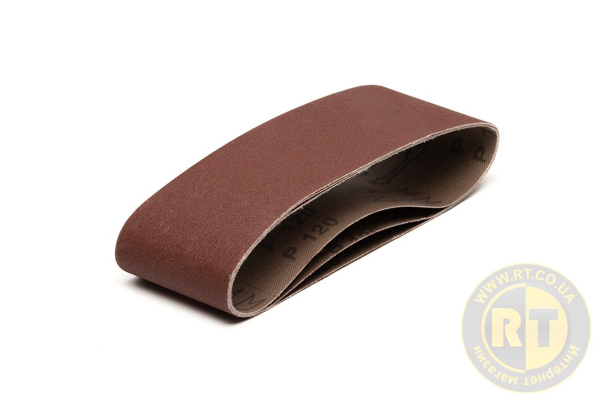 Стрічка шліфувальна збіжжя 120, 76×457 мм, набір 3 шт - для делікатного передфінішного шліфування. Для стрічкових шліфувальних машин. Електрокорунд, подвійне смоляне покриття, тканина X. В упаковці 3 шт.