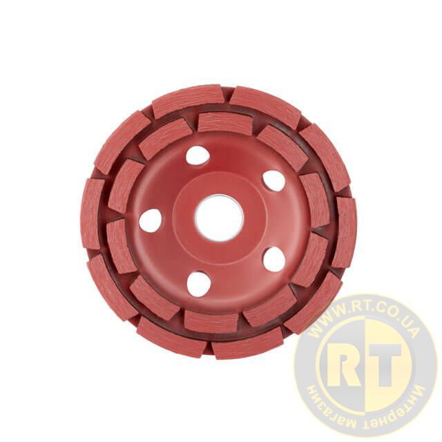 Чаша алмазна для шліфування, вирівнювання підлоги і стін. Завдяки алмазним сегментам, вона забезпечує швидке та ефективне видалення шару матеріалу з оброблюваної поверхні і гарну фінішну обробку. Високоякісне промислове алмазне зерно з насиченістю крихтою до 22% використовується для покращення продуктивності і збільшення строку служби.