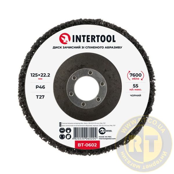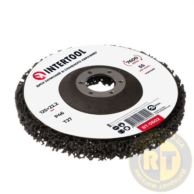Диск зачисний зі спіненого абразиву, чорний, 125×22,2×13 мм, P46, T27, 7600 об/хв INTERTOOL BT-0602