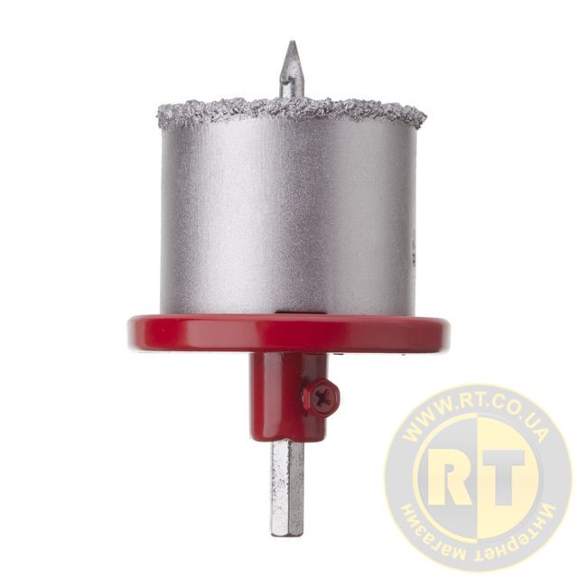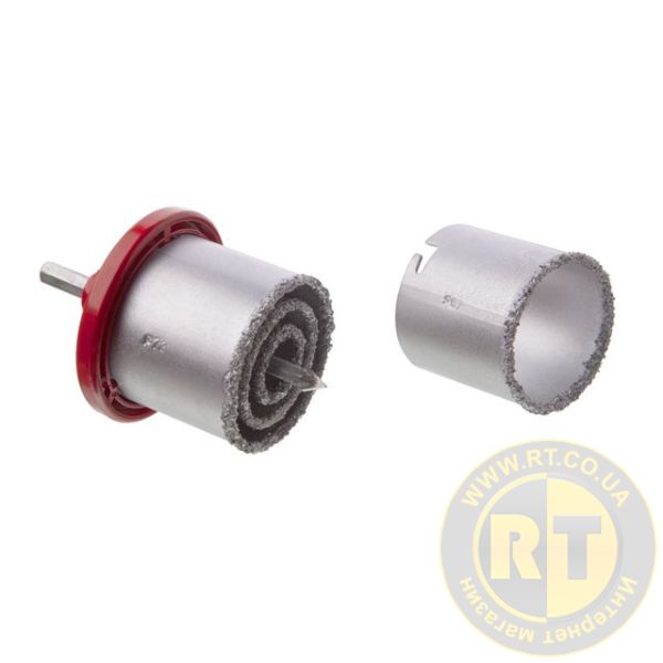 Край коронок вкритий карбід-вольфрамовою крихтою з товщиною шару 5 мм, що забезпечує комфортне свердління без сколів та тріщин. Глибина свердління складає 64 мм. Завдяки центруючому свердлу забезпечується точне позиціювання коронки під час свердління, що збільшує якість отворів.