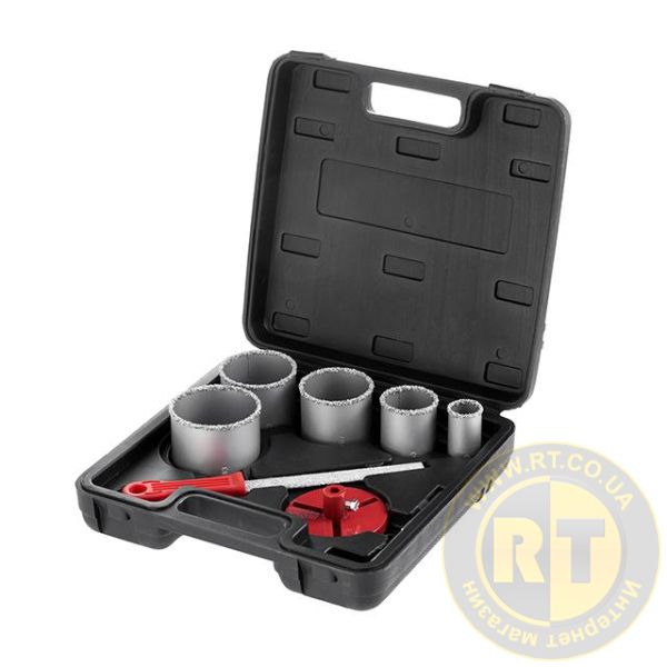 Набір корончастих свердел для плитки 5 од., 33–83 мм, вольфрамове напилення + напилок, кейс INTERTOOL SD-0428