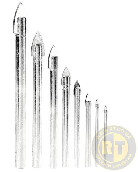 Набір свердло-пік для скла та кераміки 8 шт 4х60/5х65/6х68-2 шт/8х70-2 шт/10х85/12х90 мм — універсальний комплект для точного свердління отворів у склі, керамічній плитці, дзеркалах та фарфорі.