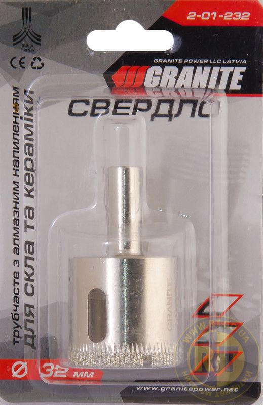 Свердло для скла та кераміки трубчасте з алмазним напиленням 32 мм - професійний інструмент для акуратного свердління твердих та крихких матеріалів без пошкоджень.