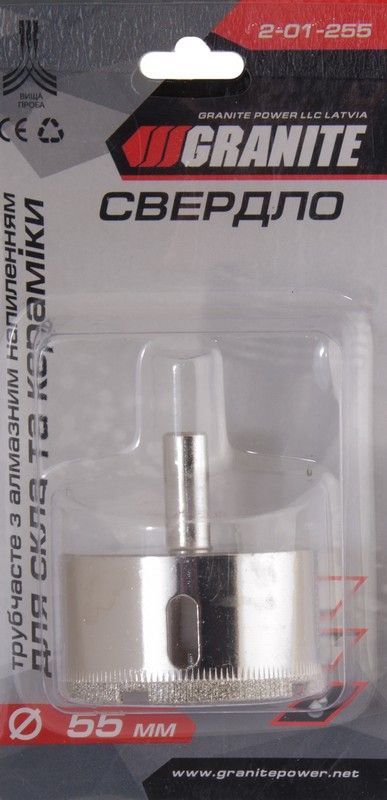 Свердло для скла та кераміки трубчасте з алмазним напиленням 55 мм - професійний інструмент для акуратного свердління отворів великого діаметру у твердих та крихких матеріалах без ризику сколів та тріщин.