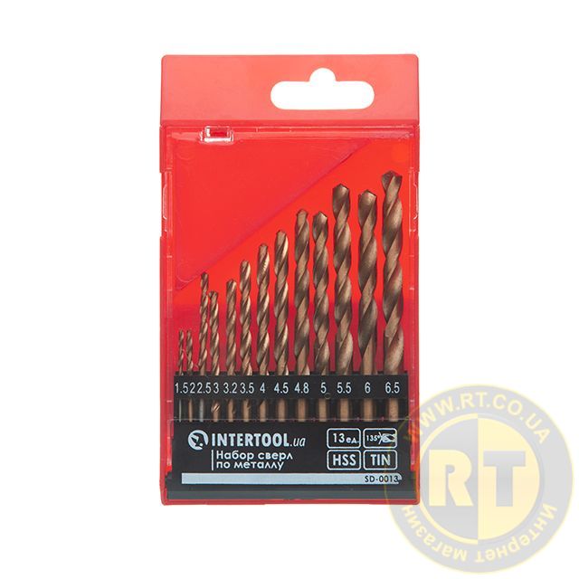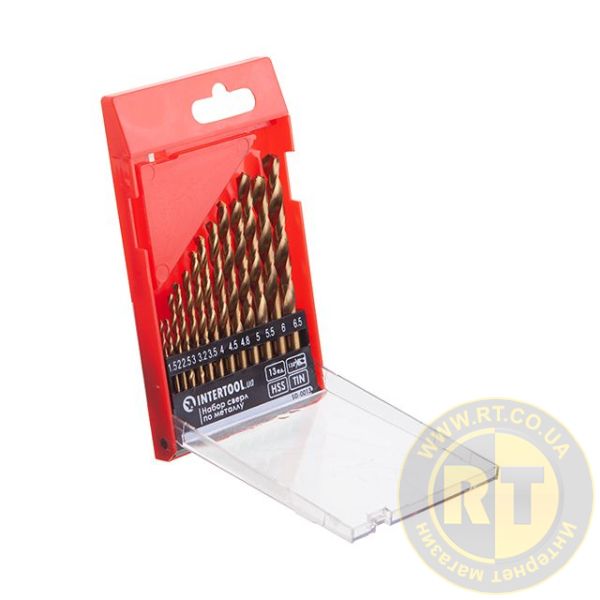 Набір свердел по металу DIN338 HSS, 13 шт. (1,5-6,5 мм), покриття Ti INTERTOOL SD-0013