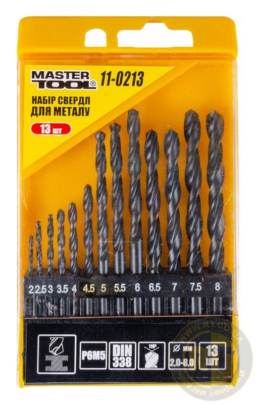 Набір свердл для металу 13 шт HSS BLACK 2-8 мм пластик MASTERTOOL 11-0213
