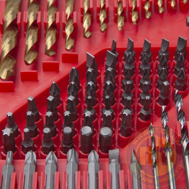 Універсальний набір містить різні види свердел для роботи з каменем, бетоном, пластиком, металом, деревом, також містить біти, зенківку та магнітний тримач. Використовуються інструменти разом з шурупокрутом або дрилем та підходять для вирішення широкого спектра завдань у монтажі та ремонтно-будівельній справі.
