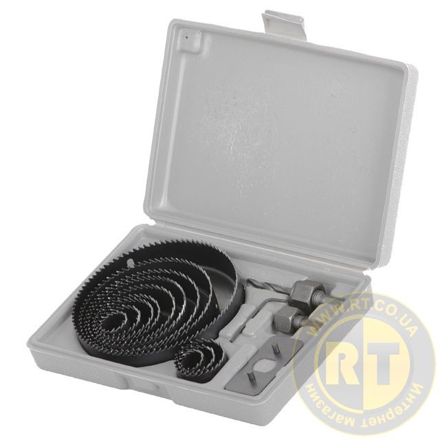 Коронки виготовлені з якісної сталі, що гарантує максимальну зносостійкість та тривалий строк служби. У комплекті є центрувальне свердло діаметром 8 мм, що забезпечує точний та легкий початок свердління. Два перехідники в наборі з шестигранним хвостовиком не провертаються та надійно фіксуються в патроні дриля або верстата.