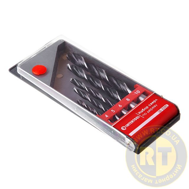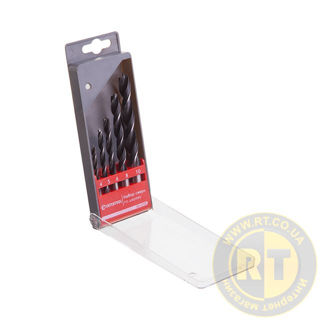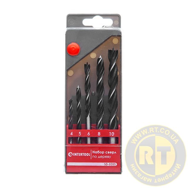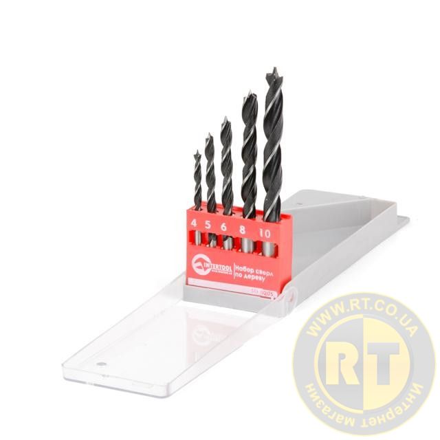 Набір свердел по деревині, 5 шт. (4, 5, 6, 8, 10 мм) INTERTOOL SD-0205
