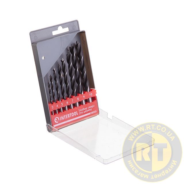 Набір свердел по деревині, 8 шт. (3, 4, 5, 6, 7, 8, 9, 10 мм) INTERTOOL SD-0208