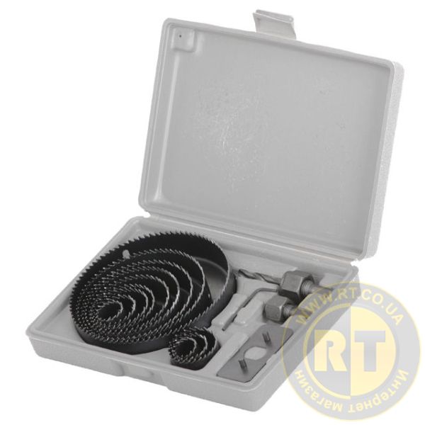 Цей комплект свердел призначений для ефективного й точного свердління м'яких порід дерева, гіпсокартону, пластику, деревно-стружкових плит та інших подібних матеріалів. Вісім коронок діаметром 19, 22, 29, 32, 38, 44, 51, 64 мм забезпечують різноманітність у виборі потрібного розміру отвору для різних завдань.