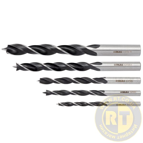 Набір свердел по дереву спіральних триточкових 5шт (4×75мм, 5×85мм, 6×90мм, 8×110мм, 10×120мм) SIGMA (1305811)